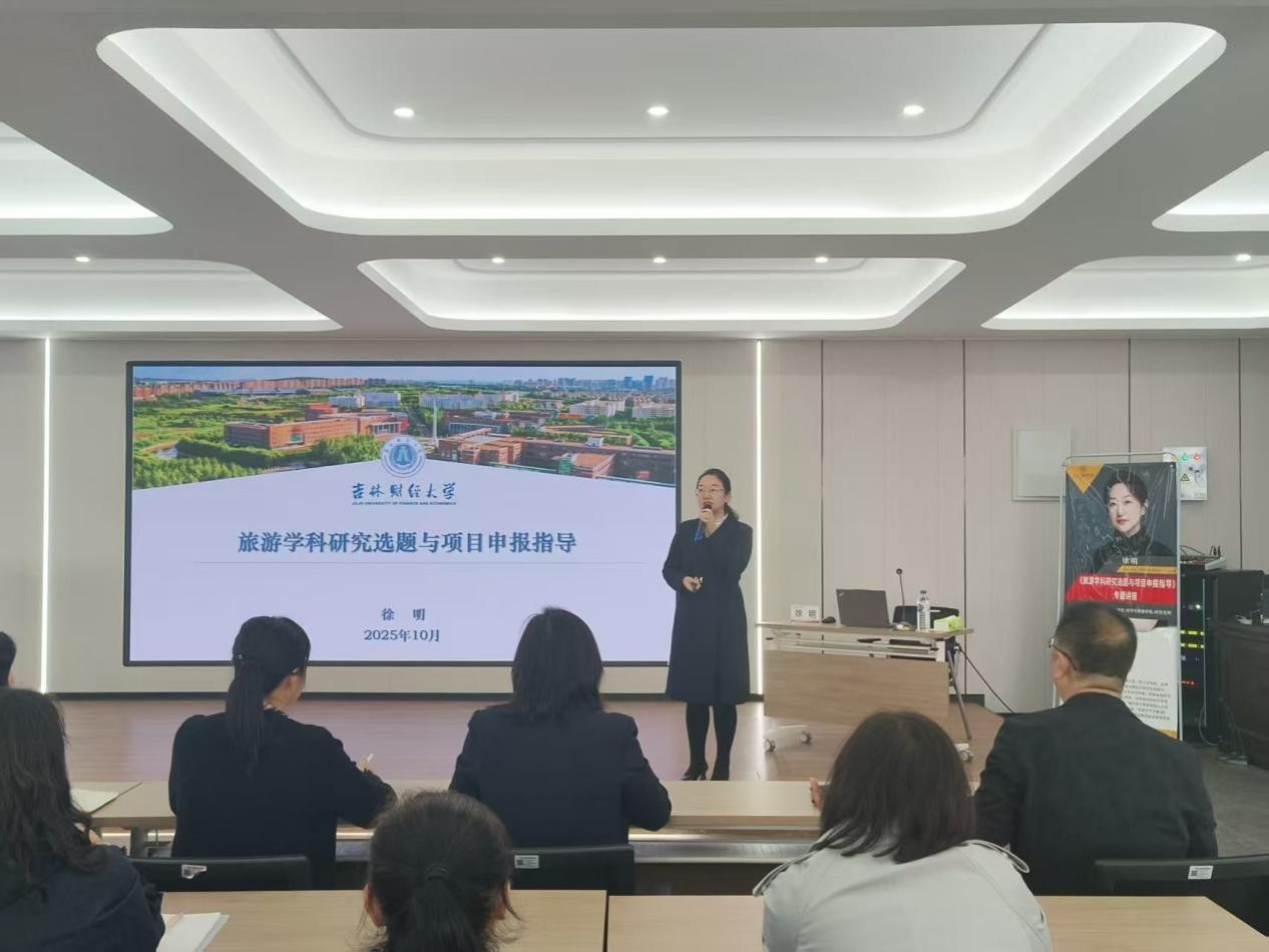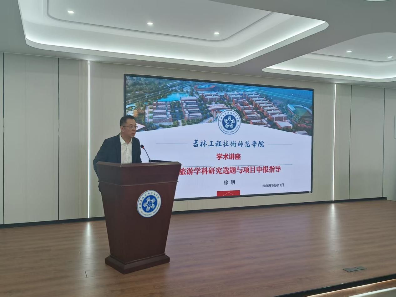 10月11日,经济与管理学院举办《旅游学科研究选题与项目申报指导》专题学术讲座。本次讲座邀请到吉林财经大学教师教学发展中心主任、吉林省冰雪经济研究院副院长、硕士生导师徐明教授担任主讲嘉宾。