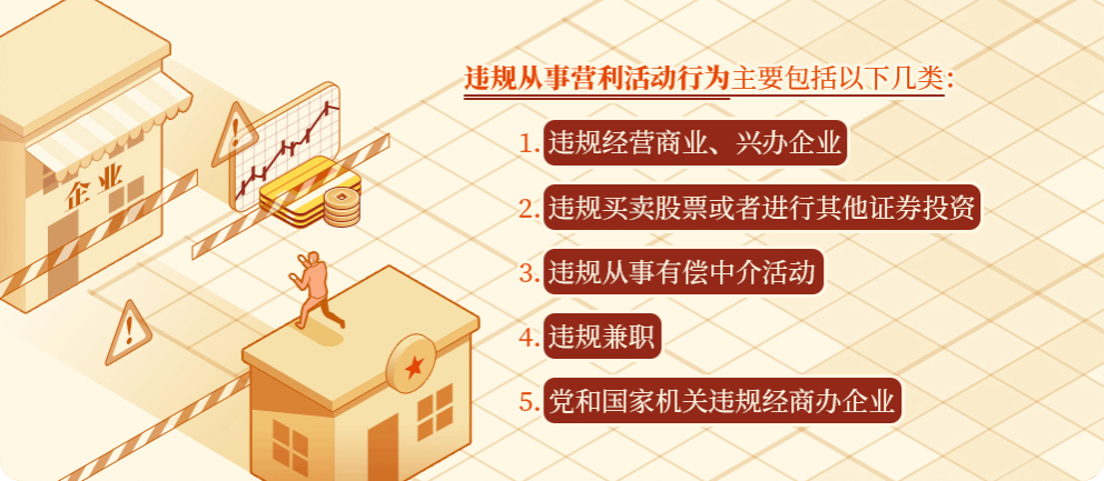 《中国共产党纪律处分条例》第一百零三条、第一百零八条对违规从事营利活动行为列出负面清单,作出处分规定。